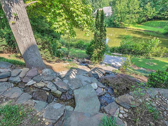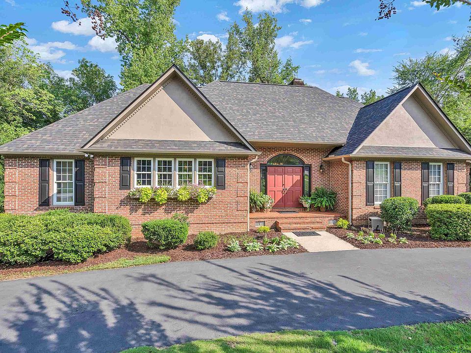 WATERFRONT, ALL BRICK home on Spartanburg's eastside! 4 Bedrooms, 2 1/2 Baths with the ease of one-level living. Nature and privacy abound with over 2,400 sq ft of living space. The CIRCULAR DRIVE and lovely front porch welcome you into the spacious foyer. The open and airy floor plan offers hardwood floors throughout with heart pine in the main living areas - no carpet! Vaulted ceilings in the great room with a gas fireplace and wall of windows/doors to the spacious back deck, overlooking the water and gorgeous waterfall feature. Entertaining is a breeze with the interior's inviting flow and design. The kitchen has abundant solid surface counter tops, gas cooktop, stainless appliances, pantry, and a beautiful bank of windows. Dining is open to the kitchen with an updated interior window to the sunroom. There you'll find a wet bar, brick floors, deck access and a water view. Tucked away in the rear of the home, the owner's suite provides comfort and relaxation with a gas log fireplace, deck access, water views, two walk-in closets, dual vanities, and roomy tile shower. Two secondary bedrooms with a Jack & Jill bath are situated on the opposite end, with a fourth bedroom and powder room in front. The unfinished basement is pre-stubbed and provides a nice workshop area, tons of storage and two walk-out doors. Enjoy the peaceful sound of the waterfall cascading down towards the pond while relaxing outdoors. Desirable Oak Creek neighborhood offers the option of Spartanburg District 7 or District 3 schools. Bring your kayaks and fishing poles! Owner/agent.