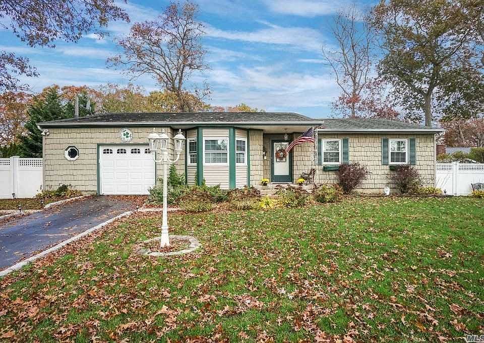 This well-maintained Ranch is on a tree-lined street in the Patchogue Medford School District. Home features 3 Bedrooms, 2 Baths, a Living Room and Dining Room Combo, Eat In Kitchen, and Den with Fireplace. It offers a totally fenced-in yard. Other Amenities are Central Air Conditions, Jacuzzi Tub, 1.5 Car Garage, Young Roof, Freshly Painted, Hardwood Floors, and 200AMP Electric (2019). Taxes with STAR $8,882.05.