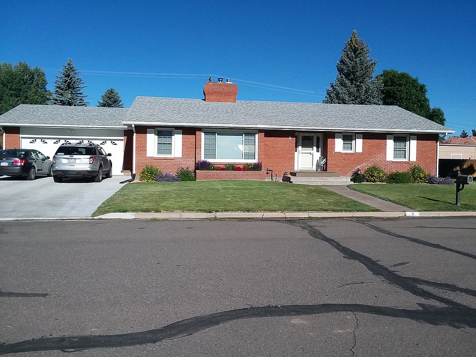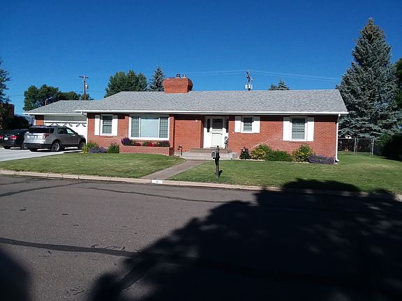 Wonderful brick home in quiet neighborhood and one minute away from a city park with playground. Grocery store, bank, and medical offices are all within a couple of blocks. This energy efficient home has had many upgrades including new windows and added insulation in the ceiling and foamed crawl space walls plus a fairly new roof with aluminum gables and soffits. With the brick construction and aluminum gables, virtually no exterior maintenance is needed! Fireplace with wood stove insert provides extra energy efficiency. Fresh paint throughout the home and the large kitchen has been updated with custom made cabinets. Kitchen includes a Kenmore glass top range and dishwasher; matching French door refrigerator/freezer negotiable. Separate large laundry room with cabinets. The two full bathrooms were also updated with custom made oak cabinets and tile shower surrounds. All bedrooms have spacious closet space and the master bedroom includes an en suite with large shower. A hidden pantry off the rear bedroom provides additional storage space. The back yard has a privacy fence and spacious new garden shed; a self-draining sprinkler system waters the entire front and back lawns. The two car garage is extra- large with an 18’ wide overhead door and plenty of additional space for storage plus the driveway was replaced only two years ago! An alley provides access to the rear of the home with extra parking for up to 3 cars. Opposite the alley is a large church which makes for quiet space behind the home.