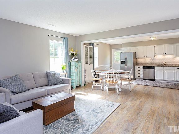This is so adorable! Beautifully updated kitchen with granite c'tops and tile backsplash. Stainless appliances. OPEN plan with wood-looking laminate flooring in the living areas and newer carpet in the bedrooms. Built in cabinetry added to dining and living areas. Updated hall bath. NEST thermostat and RING alarm system. New roof, water heater and outdoor storage shed 2018. Easy to maintain vinyl siding. Hard to find ranch home in a fabulous SW Durham location with no HOA dues!! HURRY this one won't last!