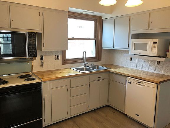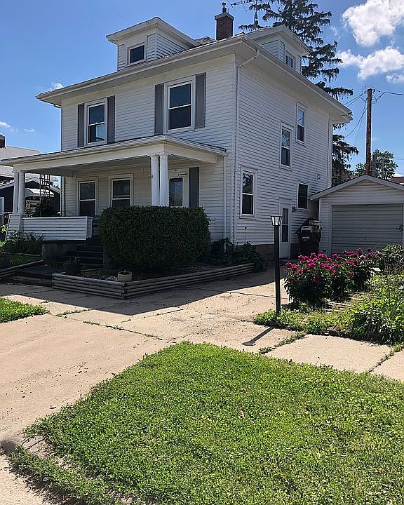 Great location and virtually no lawn maintenance! This 1550 square foot home is filled with rich, stunning original woodwork, all newly refinished. In addition, the following items are new. Kitchen: sink, butcher block counter tops, backsplash, LVP flooring, refrigerator, paint. 3/4 bath: FRP wall covering, LVP flooring, toilet, sink/faucet/vanity, paint. Living room, Dining room & Entry: curtains, refinished oak floors and baseboards, paint. 3 Bedrooms: curtains, refinished oak floors and baseboards, walk-in closet in master, paint. Upstairs bathroom: sink/faucet/vanity, LVP flooring, paint. New deck and porch. Newer windows, roof, and siding. Walking distance to Main St shopping, restaurants. Includes washer/dryer, bonus toilet, sink and much additional storage in basement. Also includes single car garage and off-street parking.