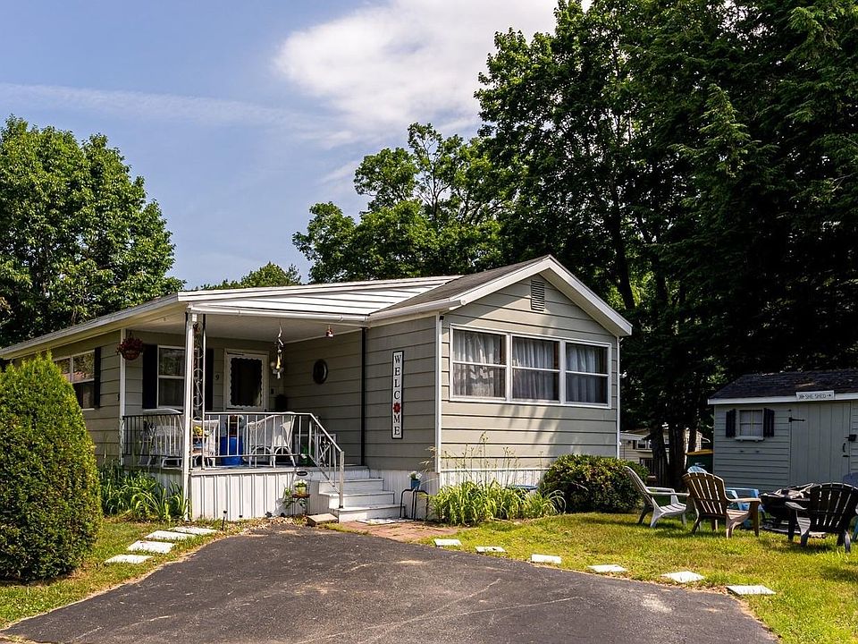 Welcome to this lovingly cared for 2-3 bedroom home. This floor plan is hard to beat, with a bedroom and bath at each end for perfect privacy. The living room has a fireplace for all those cozy nights. The open concept, with the kitchen table that opens up to the living room and kitchen, allows for wonderful gatherings. One bedroom has an attached bathroom, the other has access from the 2nd bedroom as well as the hallway. There is a large addition that can be used for a bedroom, den or Craft room. The park has no age restrictions and allows pets. The seller has done many upgrades to allow you to move right in and enjoy. An open house is Friday from 5-7 June 28th, Saturday, June 29th 10-12 and Sunday, June 30th from 12-2. Stop by and check out this wonderful home. There will be no sign on the property. Look for the #9 on the light post.