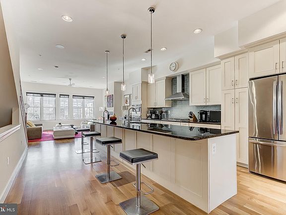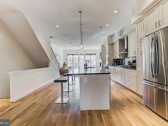 Exquisite custom-designed 2-car garage townhome located in Historic Jonestown steps from Little Italy! This home was newly built in 2015 and is an entertainer's dream with a spacious & open floorplan, multiple outdoor spaces & a gourmet chef's kitchen. Enjoy a contemporary feel with 2,300sqft+, 3 bedrooms, 2 full & 2 half baths, and direct downtown/city views from LR, master bedroom, and roof deck. The main level includes a spacious living area w/ a gas fireplace, large windows, a one-of-a-kind gourmet kitchen with stainless steel appliances, gas cooking, wine cooler, granite countertops, and an expansive 14' island perfect for entertaining. The spacious dining area has deck access and a great deck perfect for grilling. Enjoy wood flooring, recessed lighting, high ceilings, a sound system with ceiling-mounted speakers, and neutral colors throughout. On the third floor, you have the Owners suite with a gas-burning fireplace, a walk-in closet, a dressing area, a spa-like bath with a large shower & double vanity, and city views from large windows; there are two additional bedrooms and a full bath. The washer and dryer are conveniently located on this level. Stairs from the third level lead to an expansive & private roof deck with water and electric hookups and is wired for speakers. Entertain, watch the sunrise, and sunset from the roof deck. The garage level includes a rear den, hardwood floors, surround sound, a half bath, access to an open & private courtyard with pavers. The home includes a security system, is pre-wired for ethernet. The property has a great walkability score & is within walking distance to downtown, Inner Harbor, Little Italy, Harbor East, Fells Point, and transportation routes. Johns Hopkins Hospital, Maryland Medical Center, major highways, cafes, restaurants, and bars are all close by. This exceptional residence provides an amazing urban lifestyle that you must see to believe!