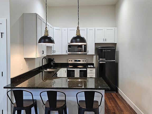 Charming New Construction in a historic downtown building in the heart of Jeffersonville, Ohio! This loft studio apartment is spacious at 636 ft 2, plus a large common area with leather furniture and large windows. The modern kitchen with brand-new appliances will make cooking a pleasure. The 14 ft ceilings, exposed brick, restored hardwood, and granite countertops add style and luxury to this open floor plan. The space is furnished and the large dressers and closet provide ample storage. The large bathroom and glass shower complete the upscale feel. The space has it's own washer/dryer and off-street parking for your convenience. Nestled in a charming small town, this apartment blends historic character with the convenience of modern amenities. Perfectly located just 3 miles from the new Honda LGE EV Battery Plant and 30 minutes south of Columbus. You'll enjoy easy access to work and the incoming amenities. OPEN TO MID-TERM RENTALS! Owner provides water, sewer, and wifi access. Tenant is responsible for electricity and trash. A PO box can be obtained at the post office across the street.