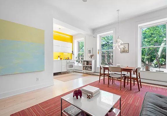 PLEASE NOTE ALL OPEN HOUSES ARE BY APPOINTMENT ONLY. Live on Fort Greene's best block! Just steps from Fort Greene Park, this floorthrough two-bedroom apartment has been tastefully renovated with a mix of modern flair that works harmoniously with the detailing of its Brooklyn brownstone roots. Upon entry you are greeted by an airy, open concept living and dining area with high ceilings and three large windows overlooking the beautiful plane trees of South Oxford Street. The kitchen - updated by the architect-owner - thoughtfully integrates lots of modern cabinetry and finishes including a seamless Corian countertop with integrated sink. Off the living area are two closets and an updated half bathroom. Down the hall in the building's quiet rear is the large master bedroom, which easily fits a king sized bed plus home office setup. There is a full en-suite bathroom attached. Off the master lies a second bedroom that can function as a home office or nursery. Both rooms face expansive tree-top views with lots of privacy and offer ample closet space. Although the apartment is nestled on a quiet brownstone-lined side street, you are at the center of everything, with premier art, theater, dance, film, music, and sporting events at world class venues, as well as a fabulous mix of restaurants, just blocks away. Neighborhood highlights include the Barclays Center, the Atlantic Terminal Mall (with a supermarket and big box stores), the Brooklyn Academy of Music, City Point BKLYN (with a Trader Joe's), Theater for a New Audience, Mark Morris Dance Center, Fort Greene Park (with tennis courts and running paths), Prospect Park, and South Oxford Park. Absolutely accessible to anywhere with several major transit hubs nearby offering access to the 2,3,4,5,B,D,Q,N,R, & LIRR trains. It's a rare gem! Cats only, please.