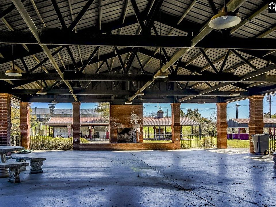 Covered area is 28 by 22. Extra power outlets are in place. Outdoor fans. Satellite with DirecTV and backyard space. Additional storage in the Attic available. 5 parking spaces in front on-site indoor bathroom with additional seating area that is also covered in the common area with outdoor fireplace gated 24 hours a day short stroll to USC to watch the gamecocks play. Tables and refrigerator do not convey.