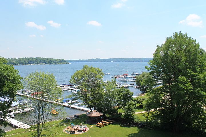 Enjoy your morning coffee while watching the sunrise over beautiful Geneva Lake's Williams Bay from your private covered balcony. The panoramic views of this condo are a ''must see''! 2 bedrooms and living room all boast views amazing lake views. Deeded boat slip and TWO carports are included with this wonderful condo. When it gets cold enjoy the wood burning fireplace. Condo association amenities include a pool, excercise room, common gathering area, and well maintained grounds.