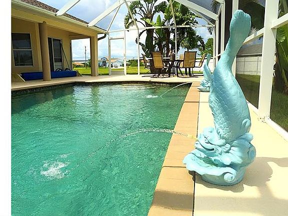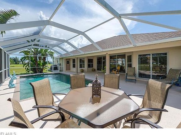 THE absolute PERFECT HOME in MODEL HOME CONDITION! This dressed-up 3/2 home is situated on over 1/3 acre on an oversized, irregular shaped lot that gives you that extra roaming room that is very hard to find in Cape Coral. Built in 2007 by Donnelly Homes, the welcoming double-door entryway opens up to the expansive tropical view of your lanai with Greek style, Pebble Tec surface pool and is surrounded by towering Birds of Paradise and an extra large backyard. Inside, soaring cathedral ceilings umbrella a large roomy floorplan appointed with the finest of features. The shaker style kitchen boasts granite counters, stainless steel appliances and a breakfast nook overlooking the pool. The tray ceiling in the master bedroom emphasizes elegance. Wake up to a view each morning, sip your coffee or cool beverage on your shaded lanai, or relax with a dip in your oversized pool. This home lacks nothing, and is the absolute cleanest home you will find...it feels BRAND NEW. Furnishings are negotiable. Call today for your private showing.