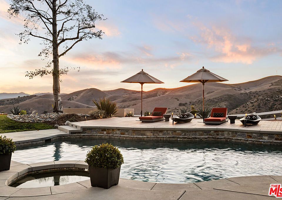 Discover unparalleled luxury in this magnificent 5-bedroom, 4-bathroom estate nestled in the prestigious community of Bell Canyon. Spanning 4,410 square feet, this detached home offers an exquisite blend of modern elegance and timeless design. As you enter through the long private driveway, you'll be greeted by a stunning facade and an 8-car motorcourt. Step inside to marvel at the high ceilings, gleaming hardwood flooring, and remodeled interiors. The formal living room features a cozy fireplace, perfect for relaxing evenings. Culinary enthusiasts will love the gourmet kitchen with its elegant marble countertops and an exclusive espresso bar for your morning brew. Each bedroom boasts abundant spaces with french doors that lead out to balconies with explosive views, while the lavish master suite retreat features a walk-in closet and panoramic canyon and city views. The master bathroom has the allure of a spa with an oversized soaking tub with a picture window that overlooks the canyon views, a steam shower and dual vanities. The ensuite bathrooms echo luxury with their refined finishes. Host unforgettable gatherings in the extensive outdoor living spaces. The property sits on over an acre and a quarter of oasis of tranquility, complemented by a pool and spa for ultimate relaxation. The dedicated barbecue area is ideal for entertaining guests while enjoying the expansive, magnificent views of both the rolling mountains from the backyard and city light views from the front of the home.