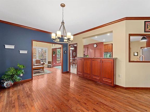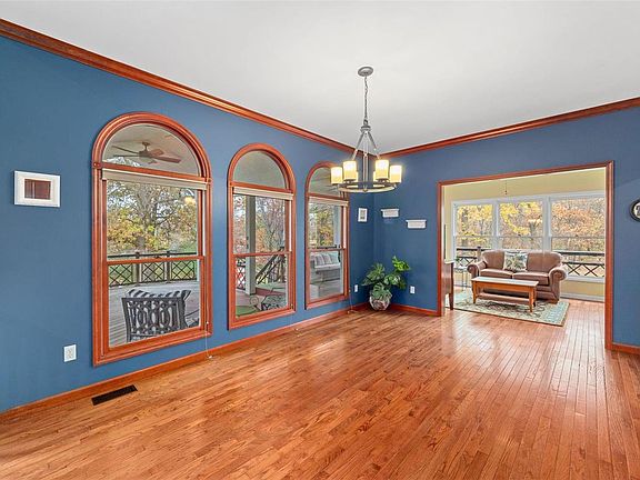 Custom built 2,402 SF atrium ranch on 1.58 acres in the heart of O’Fallon! On the main level you will find 2 spacious bedrooms, 2 bathrooms, large great room with gas fireplace, spacious kitchen with SS appliances, Brazilian granite countertops, a breakfast room, a separate dining area, a sitting room, & laundry room. You will LOVE the main floor master suite featuring a walk-in closet, private balcony, & custom barn door (made with metal from the McKinley Bridge in STL), that leads to the ensuite which boasts a custom tile shower, an air jet/whirlpool tub, & double vanity. The second main floor bedroom is OVERSIZED & has 2 walk-in closets. The mostly finished walk-out basement offers 3 additional bedrooms & 2 bathrooms, as well as a large family room, office, & a secret room! Outside you will find a large covered deck with railings made from the McKinley bridge, a huge outbuilding (50x30) for all your toys, RV hookup, creek, & plenty of space to enjoy the beauty of nature!