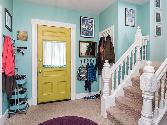 A rare find! Move-in ready 4 bedroom, 2.5 bath home with easy access to RT 91! Wonderful, homey first floor layout offers spacious entry foyer, bright living and dining rooms with wood floors, tiled half bath, convenient mudroom, and updated kitchen with newer appliances, flooring and tiled backsplash! The second floor features master bedroom with double closets, large windows and ceiling fan, two additional bedrooms, a tiled bathroom with tub/shower, and two additional rooms: one is an enclosed porch, and the other, currently used as a massive walk-in closet would make an ideal home office or playroom. Don't miss the third floor! There you'll find the fourth bedroom and another room that would work well as a den, or office. Extras include: single car garage, composite deck off of mudroom, screened entry porch, and fenced yard. Economical heating with 4 separate heating zones and a natural gas boiler! Washer and dryer included.