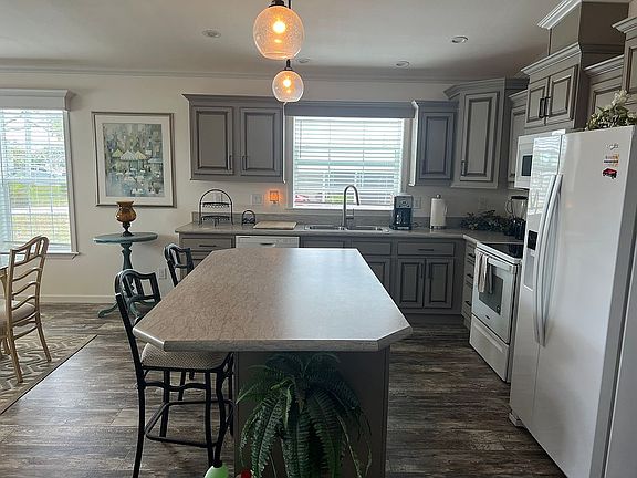 3 bed 2 bath cathedral ceilings, double master vanities, 52 ft carport, additional land in back of property for an RV or boat parking. Brand new never used washer and dryer. In a 55+ community with very low HOA fees - own your own land $388 a quarter
