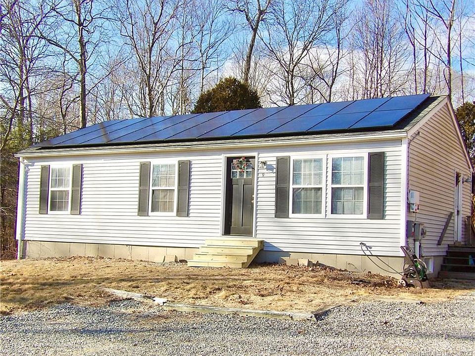 Wonderful opportunity to own a newer and well maintained ranch style home. Set back from the roadway and on over an acre of land, this is an ideal starter home or one to downsize into. The kitchen has stainless steel appliances, granite counter tops, and dining space. There is a formal living room as well as a large family room that is located off of the rear of the home. Three ample sized bedrooms and updated bath, with a tiled shower. There is a large unfinished basement with a walk-out, for plenty of storage and is heated with a pellet stove. Brand new solar panels cut heating and electric costs by about 40%.