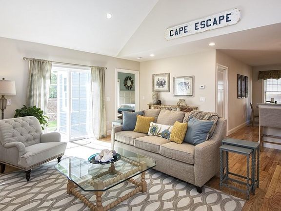 The Azalea Cottage captures all the charm and comfort of a new year-round beach-side home. With a soaring cathedral ceiling living room and a plentiful array of windows, this home captivates you upon entrance. Hardwood floors, gas fireplace and beautiful woodwork creates a warm and welcoming setting. The spacious first floor master bedroom and bath provides the perfect space for enjoying one floor living. A second level bedroom and bath complete this design. This particular home also features upgraded kitchen cabinets, counters and a two car garage. Its lower level is ready to be finished with bonus room, bedroom and bath. Property overlooks a lovely green space edged with privet fencing. All cottages are designed with energy efficient, maintenance-free materials and components. Homeowner association maintains grounds allowing homeowners time to enjoy all that New Seabury has to offer. The Cottages at New Seabury are located within an easy walk or bike ride to New Seabury's beaches.