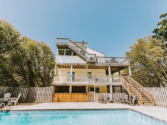 Incredible Investment Opportunity to own a 7 BR Oceanside home in Southern Shores with over 13% estimated gross rental return for 2024!  Just 4 lots from the Ocean on over ½ acre of land, this property offers incredible Ocean views from its roof top deck with not to be missed sunrises and sunsets!  The outdoor entertainment continues with a screened-in porch, extensive sun and covered decking on the top and mid levels, and a fun Tiki bar overlooking the fenced in private pool area complete with hot tub.  The top level features an open and airy kitchen, living room and dining area, and is filled with tons of natural light.  You will love entertaining in this grand space that boasts cathedral ceilings, a gas fireplace, and plenty of seating.  Each of the 7 bedrooms has a private en-suite bath, with two located on the top level and 5 on the mid level.  The mid level also offers a sitting area with new smart TV and access to the covered decking where you can relax in one of the many swings overlooking the pool area.  The ground level is where the party really starts with an enormous game and rec room complete with 2 new smart TV’s, a sectional sofa for lounging, a foosball table, pool table, gaming/puzzle table and a new arcade game!  The beach access is located at the end of the cul-de-sac on Sandfiddler Court with no roads to cross, or you can get on the walking / bike path that takes you all the way to the Town of Duck just 2.9 miles away.  The optional Southern Shores Civic Association offers community tennis courts, a marina with boat launch, soundfront park, and playground just a short distance away and perfect for launching your boat, kayaks, fishing, crabbing or enjoying a sunset picnic!  New Fortified Roof to be installed early ’24!
