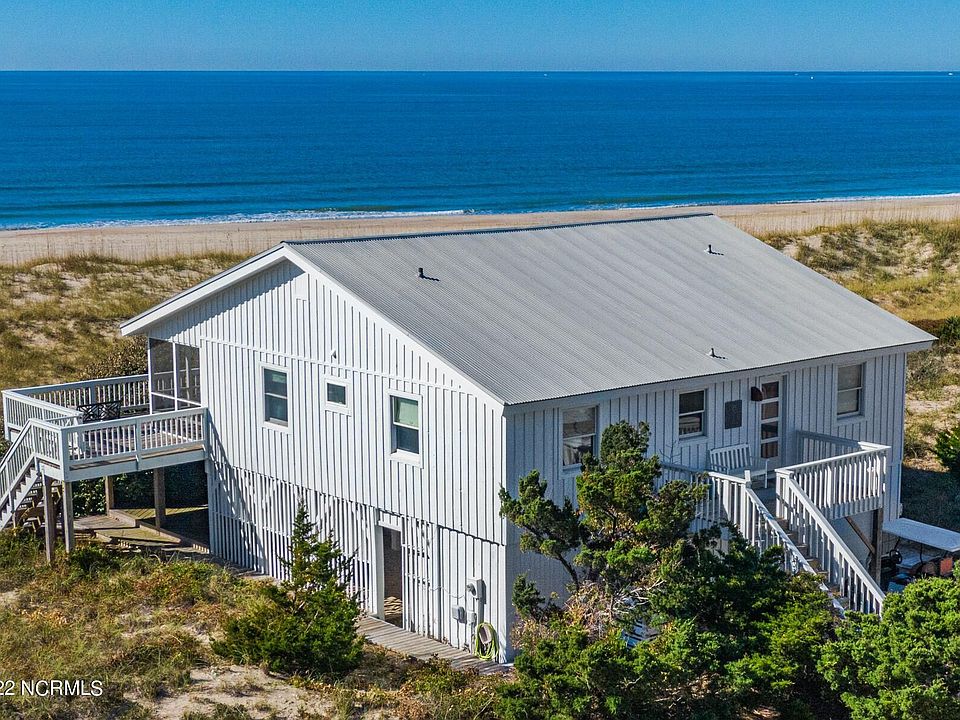 The ocean takes center stage the moment you walk through the front door and follows you from room to room. Lounge in the hammock on the extensive screened porch or retire to the sun deck for some of the most stunning South Beach sunsets you've ever seen. Covered decking and a sandy play space occupy the ground level, where you can take a break from the sun and play a game of ping pong. This beach house is being sold fully furnished with zero exclusions - Seller will leave surf boards, paddleboards, bikes and all beach gear. You can simply show up and enjoy! An equity Bald Head Island Club Lifestyle Membership is available for separate purchase and two 4-seat golf carts convey. Great rental history!