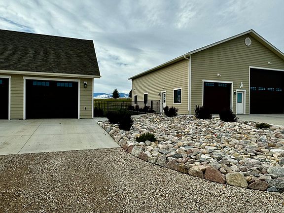 As you pull up to this meticulously maintained property, you'll be captivated by the postcard-perfect views, the attached garage and expansive shop space, the manageable acreage, the welcoming front porch, and you haven't even seen the inside yet! Built in 2016, this immaculate home has an open floorplan, stone gas fireplace, gorgeous walnut wood trim throughout, and is flooded with natural light. The stylish kitchen offers granite countertops, stainless appliances, walnut cabinetry and glass French Doors that open onto a large patio area with a retractable shade on the pergola, perfect for sunsets and entertaining. Make your way over to the 2,000 sqft heated and insulated shop space, that's large enough to house a motorhome and 3 pick-ups. You'll also find a finished wet bar and bathroom, perfect for entertaining, or can be converted back to a guest suite. The storage loft of the shop has a sink and washer/dryer hookups.