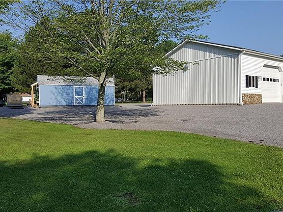 Meticulously maintained Ranch you will not want to pass by! Move right into and enjoy the open living space with sliding glass door onto covered porch; custom roller shades on all windows; full finished walkout basement with oversized family room with electric fireplace, many possibilities including an in-law area or home office. Detached oversized 2-3 car garage, plus large shed. Nicely landscaped yard with fruit trees, all outdoor light fixtures are dusk to dawn on switches, outdoor electric outlets great for decorating.