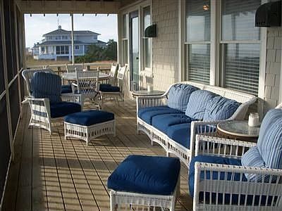 "Perfect Vision" lives up to its name as your ideal vacation spot. If you were any closer to the ocean, you would be sleeping with the fishes! This four bedroom upscale beach front house is everything you and your guests need for a great vacation on Bald Head Island. Located at 9 Scotch Bonnet, you will not be far from the market, the Shoals Club, or the Bald Head Island Club.This traditional floor plan house has a newly renovated kitchen with bar, a nice dining area and a living room complete with a large flat screen television. Comfortable sectional couches will soothe any weary traveler and the sound of the ocean will lull you to sleep. Also enjoy the screened porch that overlooks the ocean and is adjacent to the living room.A large king suite has a great view of the ocean and is attached to a corner office. A queen bedroom and a bedroom with two twin beds are also on the first floor. Upstairs is a large master suite with a great view of the ocean, private balcony and a Jacuzzi hot tub in the bath. This is truly a dream to anyone desiring a full beach experience. The house has two beach bicycles for you to roam the island with. Or take a short ride in one of the supplied two carts (two four-passenger golf carts) to the Bald Head Island Club and enjoy a nice round of golf on the completely renovated golf course. Sit back at the pool at the Pelicatessen while enjoying your favorite cocktail or a burger. We include a membership to the Bald Head Island Club with the rent. Don?t worry, this house also has the Shoal?s Club option as well that you can purchase separately.Sleeps 8: K / K / Q / 2T and a full sized crib; Two golf carts: (2 four-passenger)