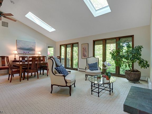 A beautiful wooded sanctuary on a cul de sac in the Mountain Lakes school district. This home has 2 levels of contemporary living with floor to ceiling windows, the first level boasts a huge master bedroom suite with great closets and master bath built for two, another bedroom, powder room, oversized living room/dining room combo with a fireplace , family room with another fireplace, spacious kitchen opening up to a sunny breakfast room with sliding glass doors to a deck complete the first level. The ground level has 2 bedrooms, exercise /yoga room, bright playroom, laundry room, full bath and storage room. All of this and tons of natural light!