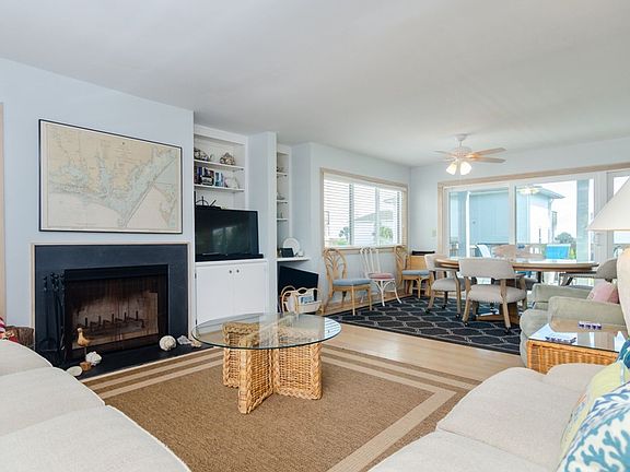 As you arrive, you'll be greeted by the coastal charm of this well-maintained home. Head upstairs to the main living level, where an open-concept layout seamlessly connects the kitchen, dining, and living areasideal for spending quality time together. The kitchen is fully equipped for everything from casual breakfasts at the island to family-style dinners at the large dining table. After a satisfying meal, step out onto the deck to feel the ocean breeze and watch the sky turn pastel as the sun sets. This level also features a comfortable queen guest room with convenient access to a nearby full bathroomperfect for guests who prefer to avoid stairs during their stay.