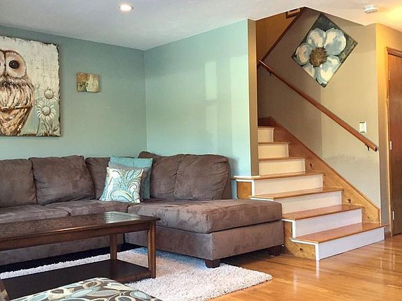 Carefree ownership at Oakwood Village. This townhouse offers new stainless steel appliances with granite counters and eat-in kitchen with sliders to a private deck (hard-wired gas grill included) overlooking wooded area. All new windows, hardwood floors and recessed lighting throughout. Wide stairway up to the bedrooms with double closets in each bedroom. Pull-down attic storage space in hallway. Wide stairway to the unfinished basement offers laundry (washer and dryer included), extra storage space, as well as a ready-to-finish room with walkout sliders to the patio area.