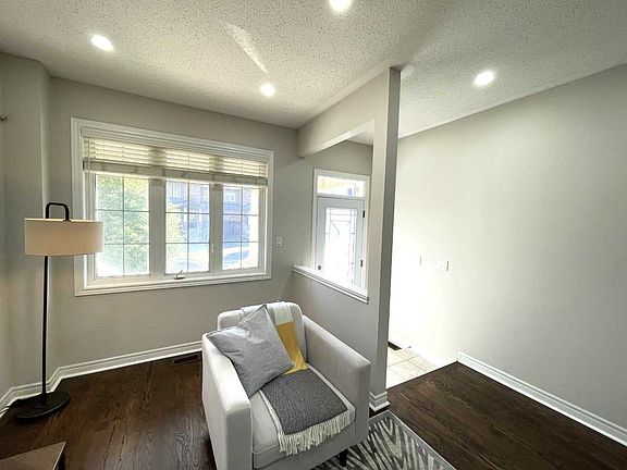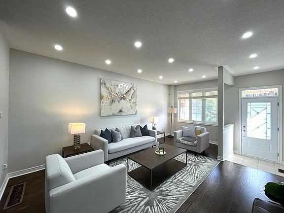 Stunning Townhouse, 4 Bedroom + Den Approx. 2200 Sqft. Oversized Rooms, Fresh Hardwood Floor Throughout The House, Oak Stairs, Gourmet Kitchen, Granite Countertop, Main Floor Pot Lights, Master Bedroom Pot Lights, Good Sized Backyard, Unspoiled Basement. Easy Access To 407/401. Non Smoking & Aaa Tenants Only! Tenants Responsible For All Utilities And Property Maintenance. One Year Lease Only.