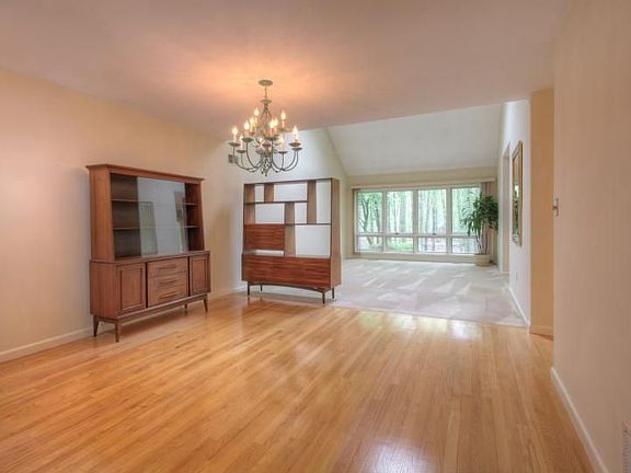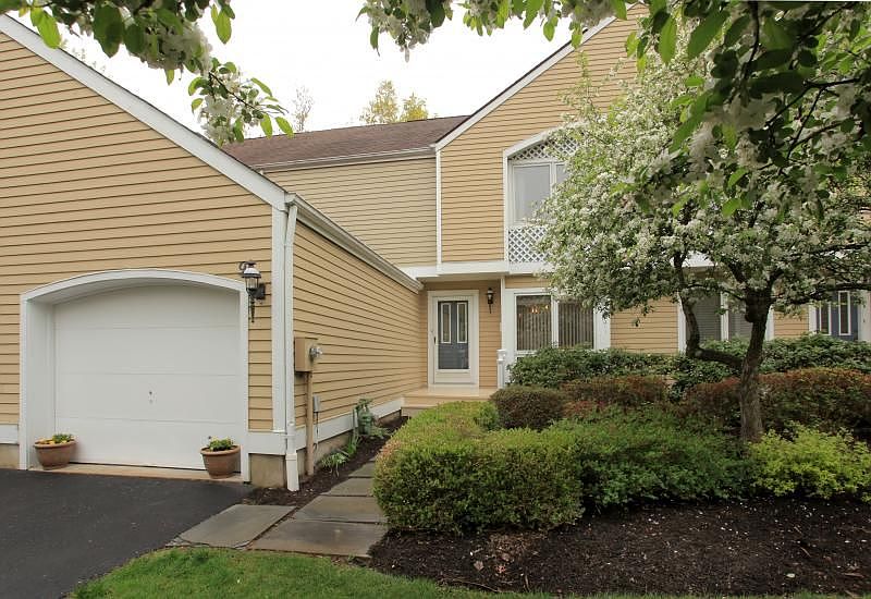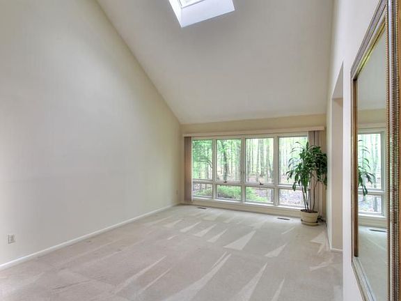 Wonderful sunny 2 bedroom condo w/ loft in desirable Woodside! Open floor plan with dramatic cathedral ceiling and skylight in living room; floor-to-ceiling windows overlook wooded glen.