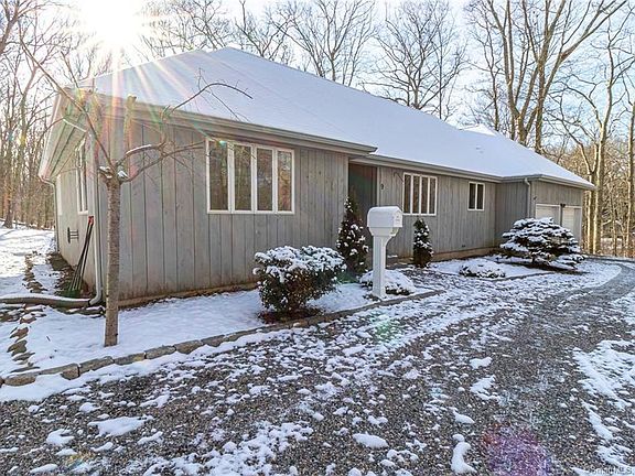 One floor living defined and the living is easy in this California-style ranch on 1.9 acres in quiet neighborhood.Spacious living room features cathedral ceilings, skylights, dining area and access to large deck overlooking your private backyard. Fantastic kitchen complete with granite counters and a professional Viking range. Master bedroom has separate deck to enjoy your AM coffee, complete with walk-in closet and master bath with custom tile and whirlpool. Hardwood floors throughout with fresh interior paint. Newer furnace and water heater and new laundry room flooring. Circular drive with two car garage. Close to I95, shoreline beaches and midway between NYC and Boston.