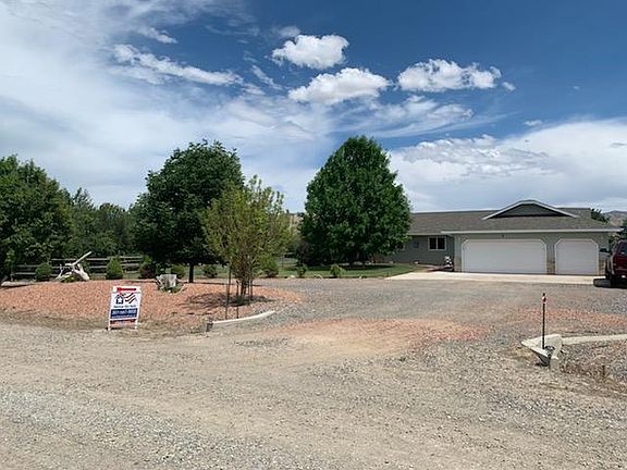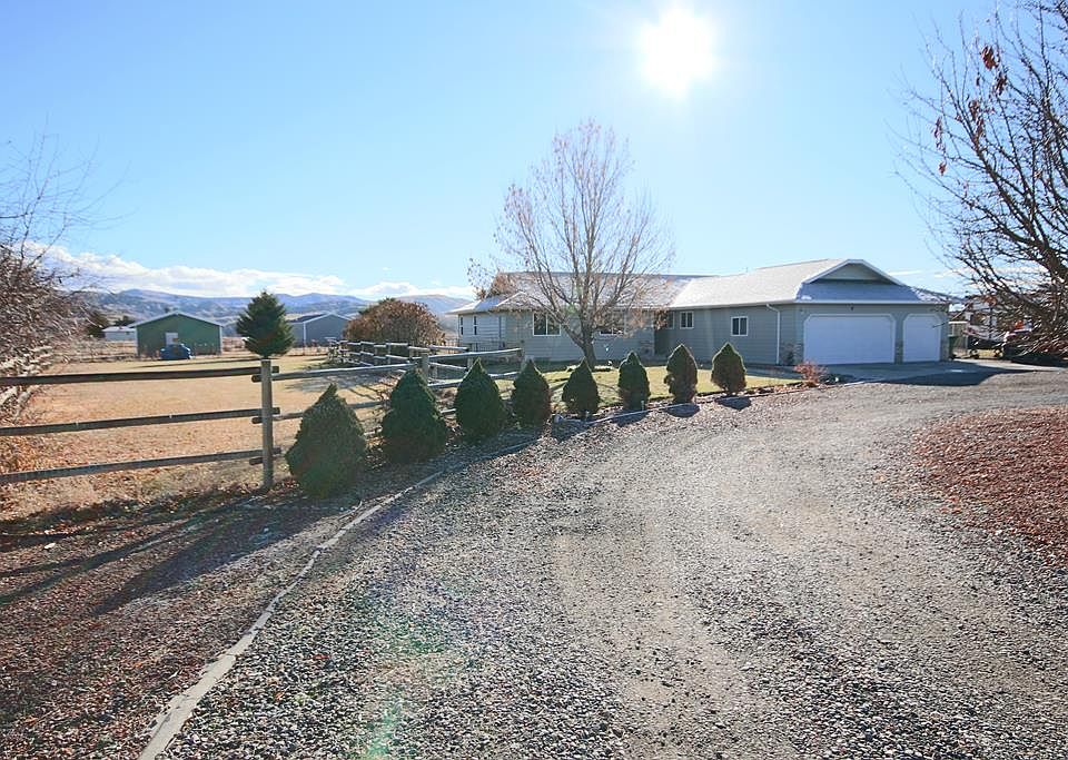 HORSE READY! 3 bedroom/2 bath house on one level with beautiful horse set up. Maintenance free exterior, including deck. Beautiful red cedar window valances, new wear resistant floor in kitchen. Energy efficient windows and doors. New rock fireplace makes a beautiful addition to the living room. Mature pear and apple trees, and lots of chokecherries! MUST SEE!