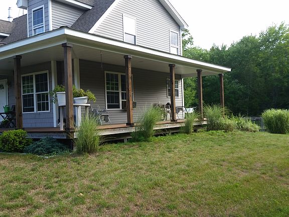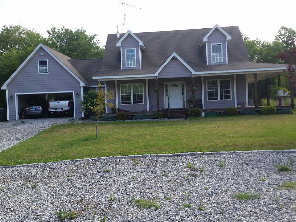 Horses permitted. 6.2 acres with like new Cape Cod. Wood floors; main level master bedroom with full bath and walk in closet. Vaulted ceiling living room with wood stove. Center island kitchen with slider to expasive deck overlooking private yard. Wrap around mahogany front porch. Heated garage.