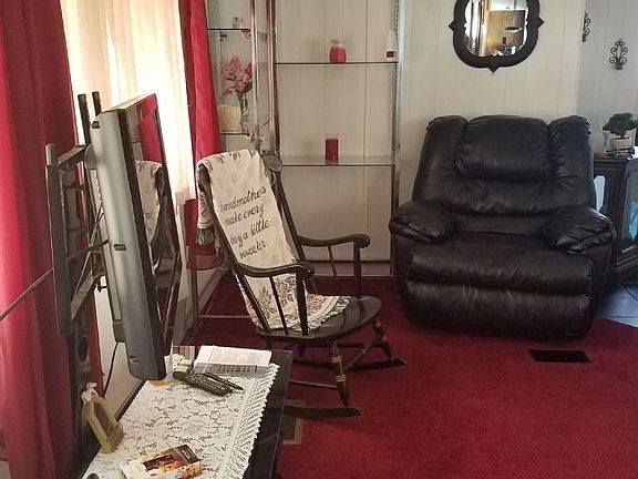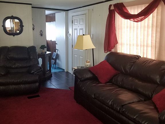Adorable home with very bright living rm & kitchen. Front & back bedrooms/front with half bath. Full size washer & dryer. Great covered porch also enclosed porch & deck with area with wrap around flower boxes. *** furniture can be included with the sale*** Monthly lot fee $489