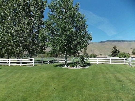 Beautiful modern home on 2.5 acres. Inviting front entryway features tile flooring. There are two spacious guest bedrooms w/deep closets and plush carpeting.Centrally located full guest bath features tile flooring.Open floor plan features large living room with plush carpeting,dining room nicely accented by large picture windows.Bakers dream of a kitchen features breakfast bar,baker island w/power,pantry,built-in china cabinets and ample oak cabinetry throughout. Kitchen has all new appliances. Oversized laundry room with utility sink.Large master suite bedroom features large sunny windows, walk-in closet.Adjoining master bath offers double sinks,tile flooring,garden tub and large shower.Fresh new interior paint, all new plumbing and lighting fixtures. Front and back covered patios. Double garage with insulated doors,garden shed,pergola with cement pad. Well established landscaped, fenced yard with auto sprinklers. Fully fenced pasture ground with irrigation rights and sprinkler system. Detached workshop has been converted into a home office with high speed internet to allow you to work from home and manage your business. Just a few miles from town this is the perfect location! Call to view today