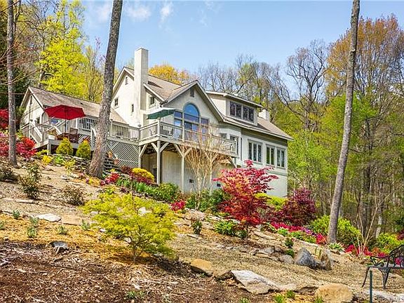 Magnificent French Country custom home on 9 acres, perched in the forest with exceptional long-range views. Located on Asheville's Town Mountain, a premier location near the Blue Ridge Parkway & NC Mountain to Sea trail. Immaculate well-planned design with walls of windows to capture expansive mountain views year-round. Grand foyer opens to sun-filled corner living room. Arched entry doors, cathedral ceilings, hardwood flooring, built-in displays & walls for art. Warm kitchen with center island, the breakfast area leads to large family room with a 15' stone fireplace & dining room. Vaulted master bedroom suite adjoins office/bonus room. Large deck for family gatherings to grill & relax. Gorgeous landscaping with waterfall, creek, and open area to garden. Enjoy fresh mountain air & temperate climate at 3,150' elevation. Luxury mountain oasis away from the crowd in a caring, friendly community just 5 miles from the heart of Asheville. Outstanding Location, Views & Privacy, A Must See!