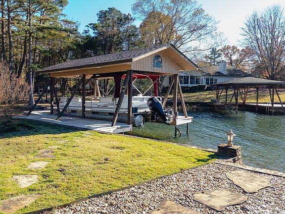 Beautiful ONE LEVEL home on LAKE BALBOA with private setting. 3 Bedrooms, 2 1/2 Baths, Open Plan, Glass windows across back optimizing lake views from Kitchen, Primary Bedroom, Guest Bedroom, Arkansas Room, Living Room, Primary Bath. Wood, Tile and Carpet Flooring. Vaulted Ceilings, Built Ins, Split Bedrooms for guest privacy, outdoor patio with Pergola, Boat Dock and Seawall. 2 Car Garage and a separate Garage for car, boat, lake toys or shop Approx. 2582 sq. ft. h/c, refrigerator stays, formal dining and breakfast areas, laundry room. Call now to see this rare find, priced at $675,000.