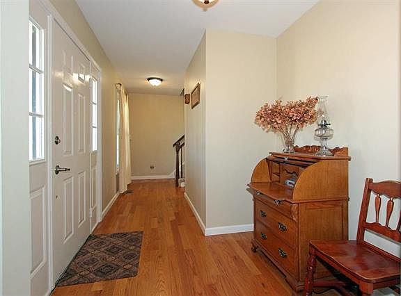Situated on a park like 1.43 acre home site in the centrally located Highland Trails neighborhood, this property is a rare find. Newer hardwood flooring added throughout the 1st floor. (Except tile in Laundry) Fantastic kitchen boasts 42 staggered height cherry cabinets with crown, roll-out shelving, in-under & above cabinet lighting, huge center island, Silestone countertops & stainless appliances. Spacious breakfast room walks out to the deck overlooking the huge private rear yard. Cozy hearth room with fireplace just off the breakfast room. Nicely finished walkout lower level with a huge rec room, full bath & atrium doors to patio. Large main floor laundry w/newer front-load LG washer/dryer. New roof and Trane HVAC Heat Pump system in 2014. Siding soffit & facia 2007. Low-E insulated windows 2005. Storage out-building and large garden space. Country setting, yet close to everything. Don't Delay!