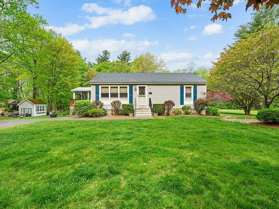 Opportunity awaits at an amazing value. Very nice ranch home convenient to highway, shopping and schools. Features include 3 season sunroom off the side of the home with slider to back deck ,patio and Bullfrog Spa A5L Plus (hot tub) with 4 interchangeable seats, sound system and lighting 2013 and a Girbraltar above ground pool (needs a new liner) Newer updated kitchen and bath and newer roof. The lower level is partially finished but is not heated, makes a great family room or home office. The mature landscaping and private backyard makes a beautiful OASIS for outdoor living space for you to enjoy. Beautiful Reeds Ferry shed for storage. This property is truly a Gem and is just waiting for your personal touches. Showings start at OH on Saturday from 11-1:30 and Sunday from 11-1.