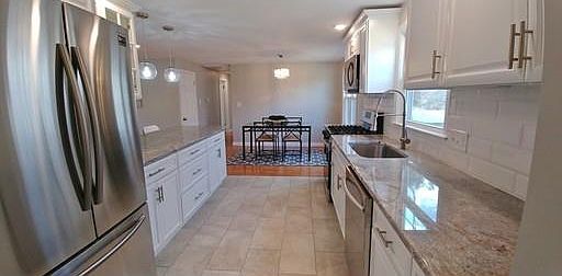 SUNDAY OH CANCELLED --- Newly renovated ranch in a highly desirable neighborhood! Open concept living space perfect for entertaining. Gorgeous new kitchen with white cabinets, granite countertops and new stainless steel appliances. Large peninsula with plenty of seating open to living room. Bright sunny living room features gleaming hardwood floors, oversized picture window and dramatic floor to ceiling shiplap fireplace. Main Bath has been expanded to feature double sinks and custom tile. 3 sunny bedrooms all with hardwood floors. Additional half bath, laundry & super convenient mudroom off garage complete the 1st flr. Bright walk out basement features a huge finished family room & bonus framed 1/2 bath for future expansion. New vinyl siding, all new energy efficient tilt in windows, LED lighting, new roof, freshly painted in neutral colors. New 100 amp electrical, updated plumbing, new FHA/gas heat w/ central air coil. Large yard, fire pit, great commuter location near Rt 3 & 495
