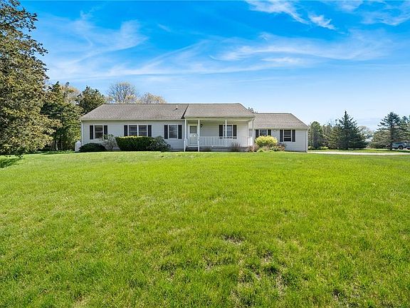 Welcome to 9 Spring Lane, an incredible ranch located in a desirable cul-de-sac neighborhood, sitting on a well-manicured one acre corner lot, and boasting both a front farmers porch and back deck for you to relax and enjoy! Enter through the main door and flow through the entry hallway where you'll come to the first of 2 full bathrooms. Next to that you'll find you laundry room and side door entrance to the oversized two car garage. In the other direction, you'll come to the generous-sized kitchen and dining area complete with hardwood floors and white-washed cabinets, and the oversized living room with gas fireplace to enjoy on winter nights. Down the hall is the primary bedroom with en-suite bath that has been fully renovated featuring beautiful tile work in the shower stall, and an over-sized closet. The double pantries are located in the hallway for ample storage. Central air conditioning, Anderson windows and an eight zone underground irrigation system. The unfinished basement extends the length of the home and offers potential for renovation and added living space. Just minutes from the gorgeous Charlestown beaches and ponds. Perfect one-level living for all year round or summer months. Please call/text directly for a private showing.
