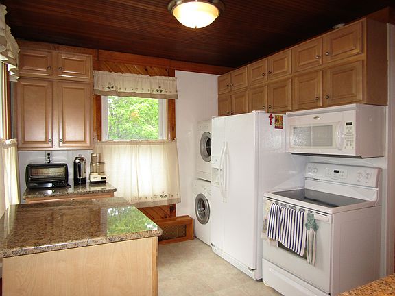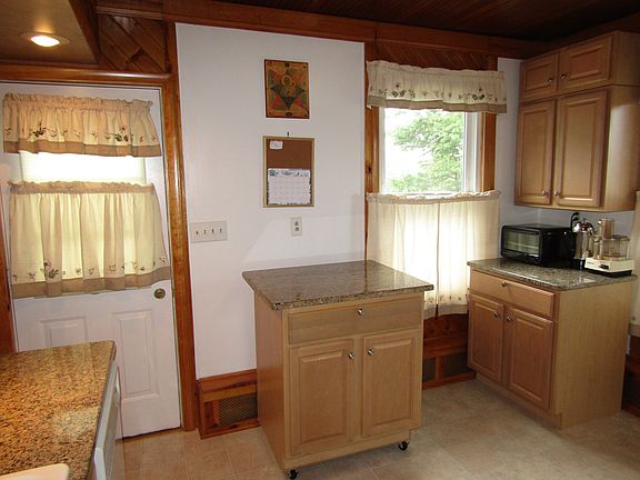 DARLING BE HOME SOON! You will want to share this 2 Bed/1 Bath with that special someone! It's got so much character! The granite counters and wooden ceilings make you feel special! And the view over the town makes you feel ROYAL! The front deck is trex and covered so you can even sit out in the rain and watch the world go by! There's also a private back deck! The lower level could be divided from the garage and finished off with an awesome family room! This home has central air and a lovely yard with great landscaping! All of the wiring has been updated, the windows are insulated, the roof is about 8 years old and the furnace is around 10 years old. LOW TAXES - LOW HEATING COSTS - LOW MAINTENANCE COSTS No time to dawdle!