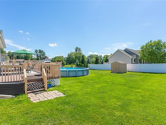 This home has it all! Extra-large deck overlooking pool and fully fenced yard. Shed for extra storage. Brand new siding just done June of 2021! Open floor plan allows you to view the kitchen, family room and formal dining room. Kitchen features solid surface counters, tiled back splash and pantry. Kitchen appliances stay for your convenience. Owners suite features walk in closet, sink/vanity area with door leading to main bath. Both bathrooms have been updated. Furnace just cleaned and checked for added piece of mind. Basement has been waterproofed if your looking to finish it for extra living space. Delayed showings start Friday, June 25th. Negotiations on June 28th.