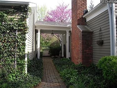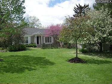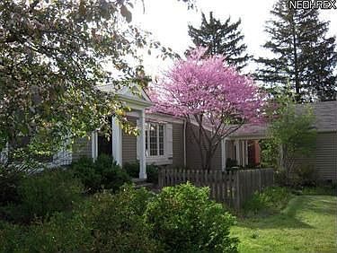 Special house in a special location on a side street just at the top of Grove Hill in Chagrin Falls Village. Beautiful acre with lots of privacy in fenced in patio surrounded by flowering trees. Plenty of open lawn space for play. Beautifully decorated home with formal living with fireplace flanked by built in book shelves. Dining room with French doors to patio, kitchen with wood floor steps down to spacious family room with fireplace. Three bedrooms including master addition with remodeled bath. Den on first. Extra large two car garage with Nature Stone floor. Easy stroll to town with sidewalks at top of Grove Hill. Quite a little bit of Heaven.