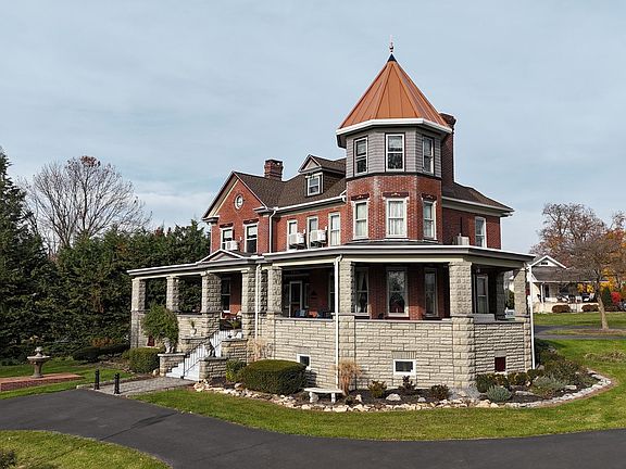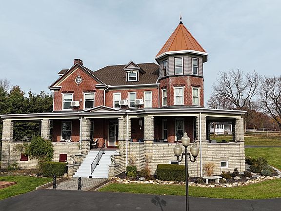 This breathtaking property built in 1908, boasts a wealth of original features, including exquisite chestnut and oak woodwork, captivating pocket doors, gleaming hardwood floors, striking stained glass, stunning chandeliers, and two unique and gorgeous fireplaces, creating an ambiance that harks back to a bygone era. They just don't build them like this anymore! Enter inside and be enchanted by the harmonious blend of classic charm and modern conveniences. The kitchen has been thoughtfully updated, showcasing the perfect marriage of style and functionality. Adorned with luxurious granite countertops, it offers a sophisticated space to unleash your culinary creativity and entertain guests with ease. Spread across three levels, this home provides an impressive 3,760 square feet of living space, offering ample room for relaxation, work and play. Each level presents its own unique charm and character, providing a seamless flow throughout. The house has been lovingly and meticulously renovated inside and out, needs absolutely nothing, and is 100% move-in ready. The entire roof and roof decking on the house and garage was replaced in 2023, with a transferable warranty to the new owners. New rain gutters were also included in this project. A new energy efficient boiler system comfortably heats the eighteen classic radiators throughout the home, a new hybrid water heater provides the hot water. The house is amazingly energy efficient with each bedroom having its own mini-split heater/AC unit, ceiling fan and large closet. The spacious master retreat is complete with the most luxurious bathroom imaginable, and gigantic walk-in closet. Each bathroom has new fixtures included in their tasteful remodel. The gas log fireplace insert in the parlor creates an amazing romantic ambiance on cold winter evenings. The exceptional third floor office in the top of the turret, has a stunning birds-eye view, overlooking the property and out to the blue ridge mountains. The full semi-finished basement has room for lots of storage, a workout room, workshop or hobby space. The oversize garage will fit two vehicles, with additional space for workshop or more storage. The large brick shed houses lawn equipment with room for much more. The new sewage system connects the house to public sewer, eliminating all worries regarding sewer or septic system issues. Connection to the public city water system is also a big plus. Comcast provides dependable internet service, with cell phone coverage being extremely strong. It is a short walk to the quant downtown where you will find many restaurants, brew pubs, cozy coffee shops, antique shops and many other unique stores to explore, One of the many highlights of this property is the awe-inspiring enormous wrap around porch, complete with a classic porch swing. This delightful oasis encapsulates the essence of outdoor living. The entire porch floor was replaced with 3” tongue and groove kiln-dried planks, and will last another 100 + years. Imagine sipping your morning coffee or hosting unforgettable gatherings while immersing yourself in the breathtaking views of the methodically manicured landscaping that stretches across the expansive 2.2 acres of land. This Victorian beauty is a true gem, capturing the feel of a simpler time, while offering modern comforts and conveniences. With its rich history, stunning original features, and impressive living space, it presents an exceptional opportunity to own a piece of architectural splendor. Don’t miss this chance to experience the magic and charm of this remarkable home.
