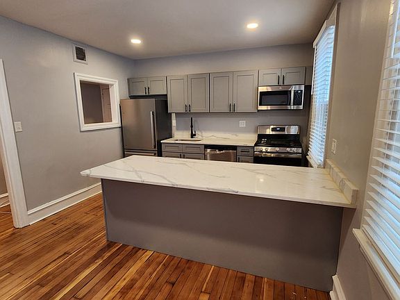 Spectacular two bedroom apartment in the heart of Ardmore. Large living area that includes brand new kitchen with gray shaker cabinets, quartz countertops and new stainless steel appliances including large top fridge refrigerator with ice maker. Huge breakfast bar. New lighting and ceiling fans throughout. Updated bathroom with brand new vanity, tile and flooring. Primary bedroom has three large closets, balcony and new ceiling fan. Completely refinished beautiful hardwood floors throughout. The apartment has central air and heat. Washer and dryer in the hall. Elevator in building. Water is included in the rent. Tenants pay for heat and electric. The apartment is in the center of town next to shopping, restaurants and the train. Close to Ardmore, Haverford, Wynnewood, Bala Cynwyd, Merion and Bryn Mawr.
