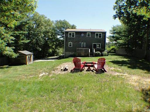 Quiet and solitude are the operative words for this pretty cape situated on a knoll in a 7-lot cul de sac setting surrounded by trees in a nice subdivision. First floor offers open floor plan and hardwoods in LR, Dining area and Kitchen. Kitchen offers center island and oak cabinets with large eat-in area with slider to back deck. First floor bedroom offers carpeting and currently used by sellers as a den/home office. Two large bedrooms on 2nd level with newly renovated full bath. Lower level offers family room and 4th bedroom along with full bath and walk-out. Plenty of space in back yard to store boat and sit around the fire pit. New roof & furnace in 2005/2006 and replacement windows in 1999. Deeded Beach Rights so you can enjoy Great Herring Pond's private beach.