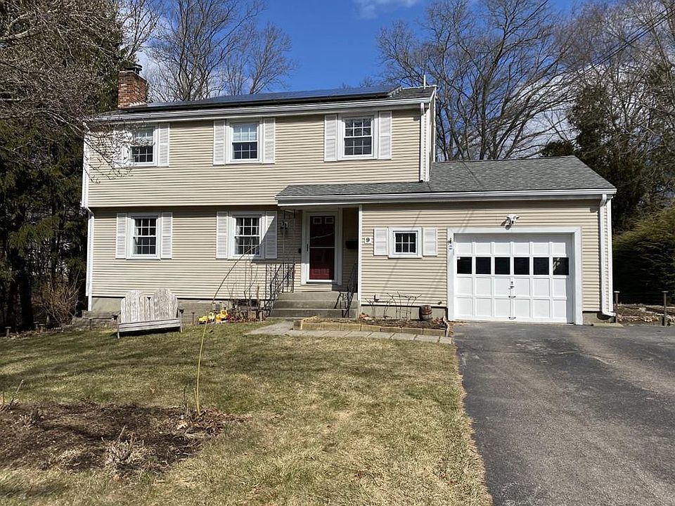 Desirable WEST NATICK location for this family friendly, 4 bedroom, 2.5 bath Colonial Garrison. Located on dead end road in a family friendly neighborhood, this ~1 acre lot has an expansive back yard, ideal for gardening, recreation, children, and pets (existing dog kennel). Within walking distance to Brown Elementary and Kennedy Middle schools as well as easy access to major commuter routes. Attached garage with direct entry to a mudroom. A deck and newly renovated 3-season room (2018) overlook the private backyard. Finished basement, updated kitchen (2019) with modern stainless steel appliances, new hardwood flooring throughout the first floor (2019), renovated guest bathroom (2018), and renovated master bathroom (2019). Thinking of going "GREEN"? Newly installed solar panels and roofing (2013) help lower your monthly electric bill with sustainable energy.
