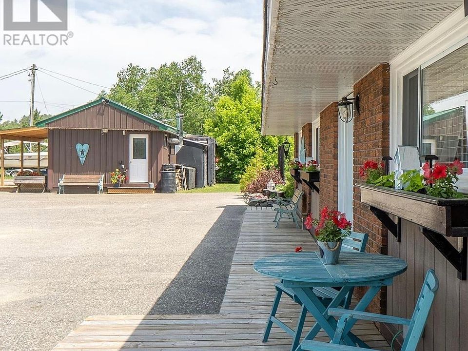 If you are looking to escape city living and love being surrounded by the great outdoors, look no further! Located in the heart of downtown Temagami, this 2000 sq ft solid brick, one-level home on a cement pad has so much to offer including two granny/guest suites and/or income potential, plus ample parking and storage for boats, trailers, and toys. A 20-foot shipping container offers dry storage, along with a 10x10 covered area for other items. Completely renovated inside 8 years ago, this home was originally the towns medical centre. It's within walking distance to amenities like the ambulance and fire stations, medical centre, grocery store, post office, liquor store, hardware store, and gas station. Within a 5-10 minute walk or drive you can access Lake Temagami, Cassells Lake, Net Lake, and countless hiking, ATV, and OFSC trails right from your door. For the past 4 years, part of this home has operated as a short-term rental with its own private entrance and outdoor space. A second short-term rental, located in a newly renovated 19' x 15' building, has been in operation since May 2024.This bright, open-concept home offers 4 bds and 2 3 pc bathrooms or use as 3 bedrooms plus a suite. It backs onto a beautiful, private treed lot with established gardens. 1 bedroom is currently used as an office. Step onto the deck and enjoy the 4-6 person hot tub in the 10x10 screened gazebo or relax under a hard-top gazebo or covered deck overlooking one of two firepits perfect for sunsets and star gazing. Inside, 9' ceilings, a spacious kitchen/living area with built-in entertainment unit, electric fireplace, wet bar, and plenty of cupboards. The kitchen features granite counters, stainless steel appliances, and patio doors leading to a large deck. Recent upgrades include new front windows, doors, a re-shingled roof, and permanent gazebo. Natural gas heat, municipal services, central air, 200-amp service. pre-inspected and turn key home!