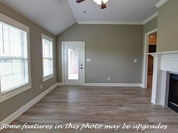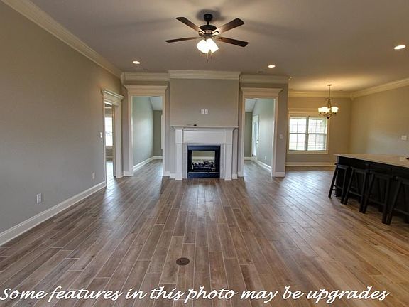 All brick Elm WoodPlan A is an open floor plan with 3 car side entry garage and is backed by a 2-10 home warranty.. Upgrades:NO CARPET - REV-WOOD in all bedrooms.Granite in all bathrooms.Pendant lights.Home has 4 bedrooms, 3 baths and a Sunroom. Great Room features 10' ceiling, extensive trim, gas-log fireplace, wood plus flooring, recessed lights and ceiling fan. Sun room has 10 foot ceilings, wood plus flooring, ceiling fan and trim. Open Kitchen includes 10' ceiling, custom cabinetry with granite counter tops, large island with extra storage and countertop seating, stainless appliances, tile backsplash, wood plus flooring, recessed lighting, and a pantry. Breakfast features 10' ceiling and extensive trim. Master bedroom has a double tray ceiling, recessed lighting, extensive trim and ceiling fan. Master bath has 10' ceilings, glamour tub with tile surround, tile shower with shower door, separate toilet area, double vanity and walk-in closet. Bedrooms 3 and 4 are oversized. Laundry has custom cabinet and tile flooring. Home has a covered back porch. Home includes a fully sodded yard, gutters including piping under sidewalks and attractive landscaping. Wood plus flooring includes hand-scraped engineered wood and Rev-wood. Builder has a closing cost program