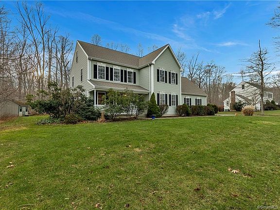 This picturesque Colonial is located on a small Cul-de-Sac near shopping, schools, Chamard Vineyard, and just minutes from town and beaches. Walk the paver path to the entry and you'll notice the front porch where you can sit and enjoy the natural beauty around you The open floor plan is inviting here. The large family room with pretty wood burning fireplace opens to the kitchen and eat-in area. The light streams in from the front to back of this home. The living room flows to the dining room which has a built-in hutch for display and storage. Continue on to the kitchen where you'll find a center island with seating, white cabinetry, and a large pantry closet. The eat-in area is directly across from the sliders leading to the Trex deck and private yard. It's easy to dine inside or outside here The owners have taken pride in maintaining their home and upgrading including a new well pump, newer furnace, new water tank and treatment systems. There's also newer stainless Frigidaire Professional appliances The main floor has been freshly painted. The home has a flexible floor plan with a living room or office on the main floor, and a 18'7" x 23'.6" bonus room accessed through the primary bedroom. The primary bedroom has coffered ceilings, a ceiling fan, and a large walk-in closet. The attached full bath has double sinks and a linen closet. The laundry is also conveniently located on the main floor. A walk-up attic and a generator hook-up are other great features of this home