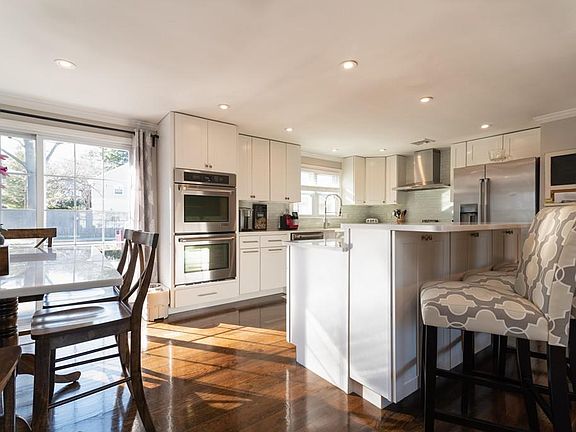 Welcome Home to this oversized split level located at Colonial Park neighborhood one of the most desirable neighborhoods in Stoneham! Its very rare for a home to become available in this area! The whole house has been completely updated! This home has hardwood floors throughout. Kitchen boasts an open floor plan with Jennair SS appliances, double oven, cooktop, dishwasher, refrigerator. New cabinets, crown molding, an island, eat in kitchen. Open to living room with fireplace, gorgeous bay window. Master bedroom with ample closet space and full bathroom. Bedroom 2 hardwood floors, Bedroom 3 currently being used as an office. Lower level family room w/ fireplace and a separate laundry room. This home is great for entertaining in the heated inground pool with newer liner, pump. Two large decks to eat or lounge at. The outdoor gazebo houses a jacuzzi. Fenced in garden area! Property has a newer roof with solar panels, windows. Two car garage. OH fr 4-6 Sat 1-3 appt only